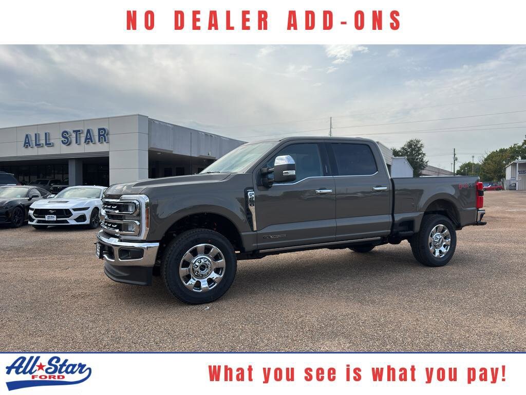 2026 Ford F-250 Super Duty LARIAT 4WD Kilgore, TX Discover the power and refinement of this 2026 Ford F-250 Super Duty LARIAT, featuring a robust V8 6.7L Diesel engine and dependable 4WD capability. Designed for drivers who demand serious towing and hauling performance without sacrificing comfort, this Super Duty pairs impressive torque with a refined LARIAT interior. Inside, enjoy premium leather seats and modern convenience with Hands Free Bluetooth connectivity for seamless calls and media streaming. Stay comfortable in every season with a heated steering wheel and climate-controlled seating, while the integrated navigation system keeps you on course for long hauls or weekend escapes. Safety and visibility are enhanced by a back-up camera, making maneuvering this full-size workhorse easier in tight spaces. This Ford F-250 LARIAT balances strength and sophistication: durable towing features and a durable diesel powerplant meet upscale touches and advanced technology. Located in Kilgore, TX, this vehicle is competitively priced and advertised as the best price in the area, offering exceptional value for buyers seeking capability and comfort. Whether you need a dependable truck for heavy-duty work or a comfortable, tech-equipped ride for daily driving, this 2026 Ford F-250 Super Duty LARIAT delivers. Contact us in Kilgore, TX to schedule a test drive and experience the best-priced Super Duty in the region.