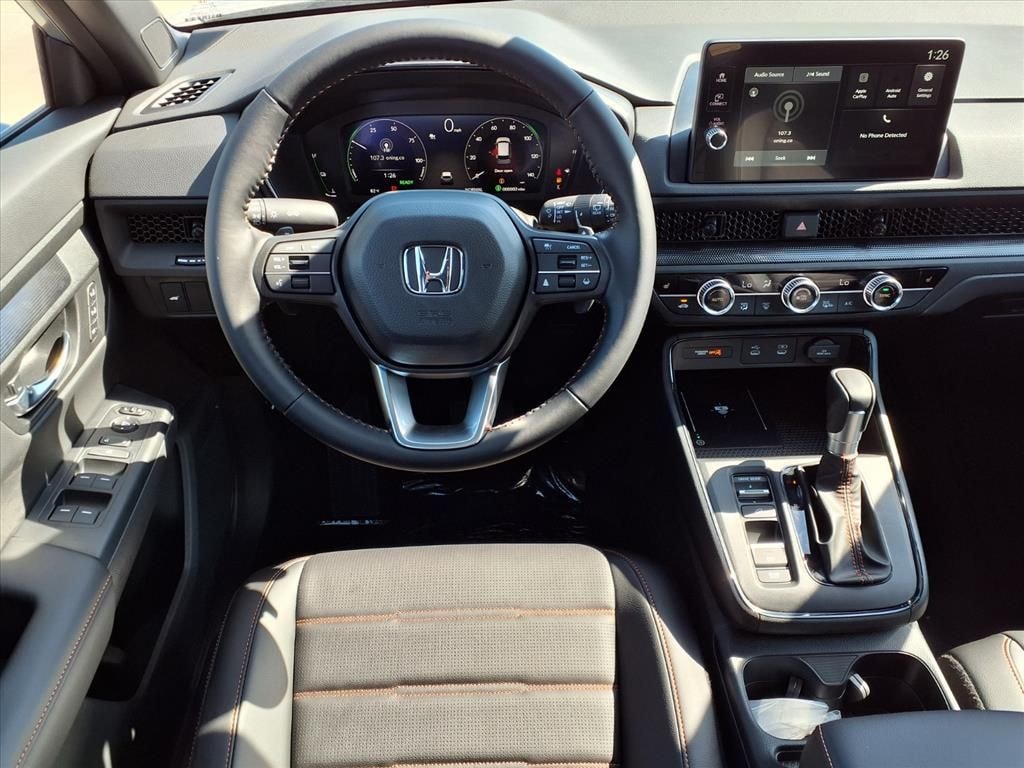 Protect this Honda CR-V Hybrid from unwanted accidents with a cutting edge backup camera system. This unit has automated speed control that adjusts to maintain a safe following distance, enhancing highway driving convenience. This model's Forward Collision Warning feature alerts drivers to potential front-end collisions. The rear parking assist technology on this 2026 Honda CR-V Hybrid will put you at ease when reversing. The system alerts you as you get closer to an obstruction. Start this unit from inside with remote start. The leather seats in this unit are a must for buyers looking for comfort, durability, and style. Bluetooth technology is built into the Honda CR-V Hybrid, keeping your hands on the steering wheel and your focus on the road. This model offers Android Auto for seamless smartphone integration. This model keeps you comfortable with Auto Climate. This unit offers Apple CarPlay for seamless connectivity. Load groceries and much more with ease into it thanks to the power liftgate.