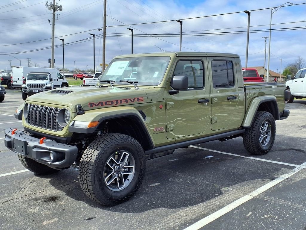 2026 Jeep Gladiator Mojave X â" Muskogee OK â" Best Price Conquer off-road trails and city streets with this 2026 Jeep Gladiator Mojave X, now available in Muskogee, OK. Equipped with a powerful V6 3.6L gasoline engine and full 4WD capability, this Jeep Gladiator Mojave X delivers rugged performance and refined comfort whether you're towing, hauling, or exploring. This model features premium leather seats, heated steering wheel, and a built-in navigation system for confident drives in unfamiliar territory. Safety and convenience are prioritized with Forward Collision Warning and seamless smartphone integration via Apple CarPlay, keeping directions and media accessible without distraction. The Jeep Gladiator Mojave X combines trail-tested suspension and Mojave-specific tuning for high-speed desert running, while maintaining everyday drivability. This vehicle is competitively priced â" offering the best price in the area â" and represents exceptional value for buyers seeking capability, comfort, and modern tech. Located in Muskogee, OK, this Jeep is ready for immediate test drives and local delivery. Financing options and vehicle history report available upon request. Why wait? Experience the 2026 Jeep Gladiator Mojave X's unique blend of off-road performance and upscale features. Contact us today in Muskogee to schedule your test drive and secure the best price on this rugged, feature-packed Jeep Gladiator.