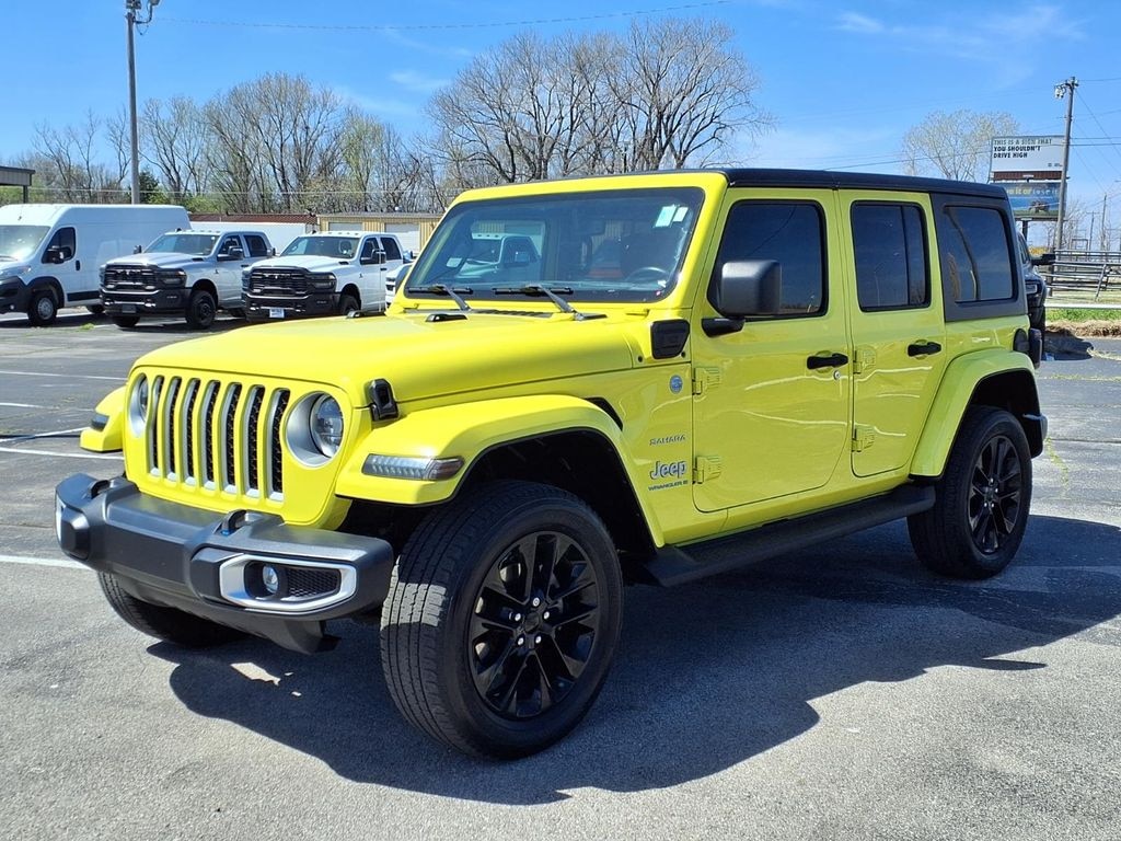 This Jeep Wrangler 4xe is pure luxury with a heated steering wheel. Protect this unit from unwanted accidents with a cutting edge backup camera system. It features a hands-free Bluetooth phone system. An off-road package is equipped on the Jeep Wrangler 4xe. Start this vehicle from inside with remote start. Apple CarPlay: Seamless smartphone integration for this model - stay connected and entertained on the go! The leather seats in the vehicle are a must for buyers looking for comfort, durability, and style. The Jeep Wrangler 4xe offers Automatic Climate Control for personalized comfort. Good News! This certified CARFAX 1-owner vehicle has only had one owner before you. It is equipped with the latest generation of XM/Sirius Radio. The Jeep Wrangler 4xe offers Android Auto for seamless smartphone integration. The Jeep Wrangler 4xe has a clean CARFAX vehicle history report. The installed navigation system will keep you on the right path.